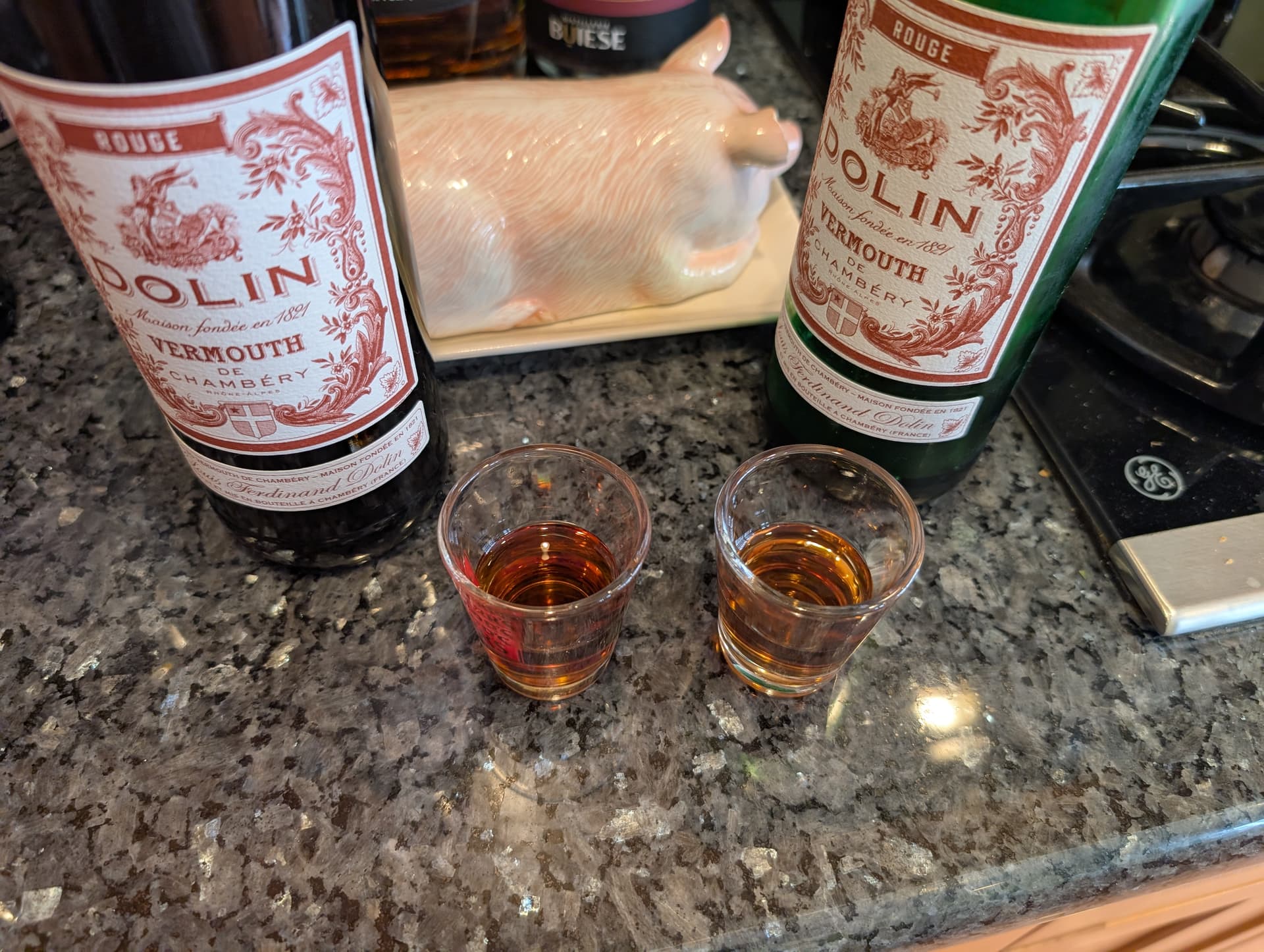 So, some fortuitous timing – I had a bottle of Dolin Rouge in the fridge that we’d kept for a few months, using a Repour cap, and it was about done while I had a fresh bottle ready to open for my negroni. So let’s do a taste test!