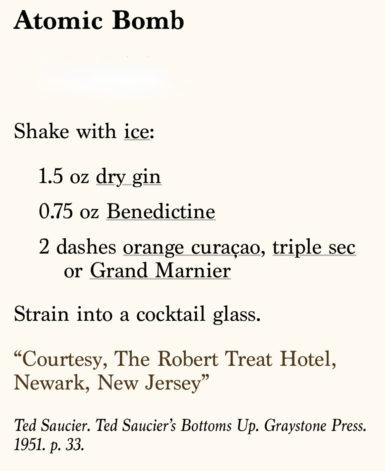 @Splificator lists “A Bomb”, is this the one listed in the COCKTAILS App? It also references it as 1951 but Newark’s proximity to Manhattan could have been popular in this region and/or its popularity could have traveled across the river.
